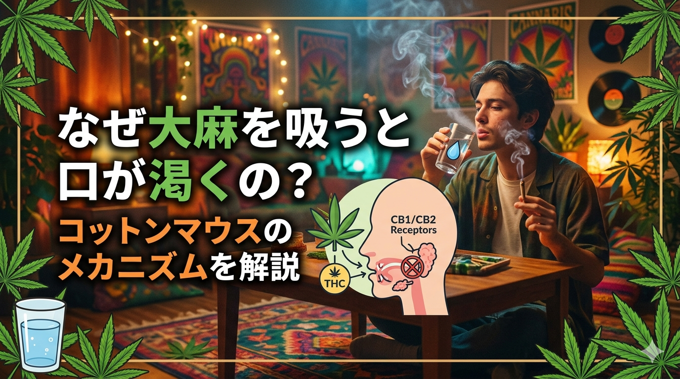 その原因は、大麻の成分THCが唾液腺に向かう神経をブロックし、唾液の分泌を一時的に止めてしまうからです。