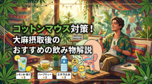 コットンマウスは大麻のTHCの血中濃度に連動するため、効果が薄れるにつれて自然に解消します。一般的には摂取後2〜4時間ほどで落ち着くことが多いですが、摂取量や個人差によって幅があります。